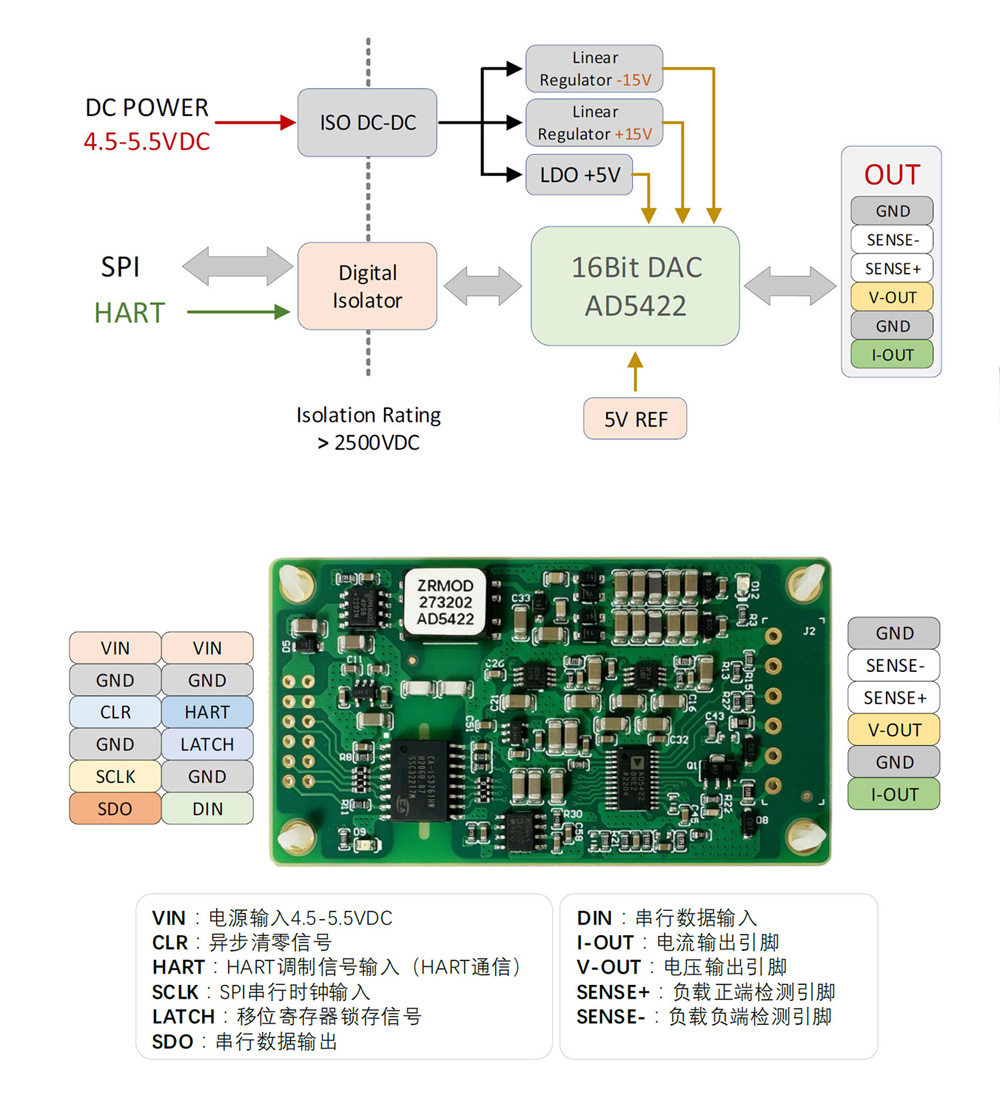 AD5422 16 Bit High Performance Current/Voltage Source Module ± 5V/± 10V/4-20mA/0-24mA