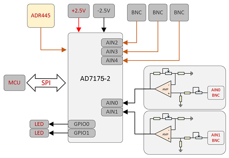 AD7175-2 250Ksps/24Bit ADC module/differential bipolar input