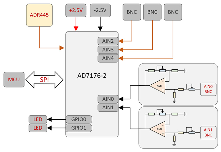 AD7176-2 ADC module 250Ksps 24Bit differential bipolar input