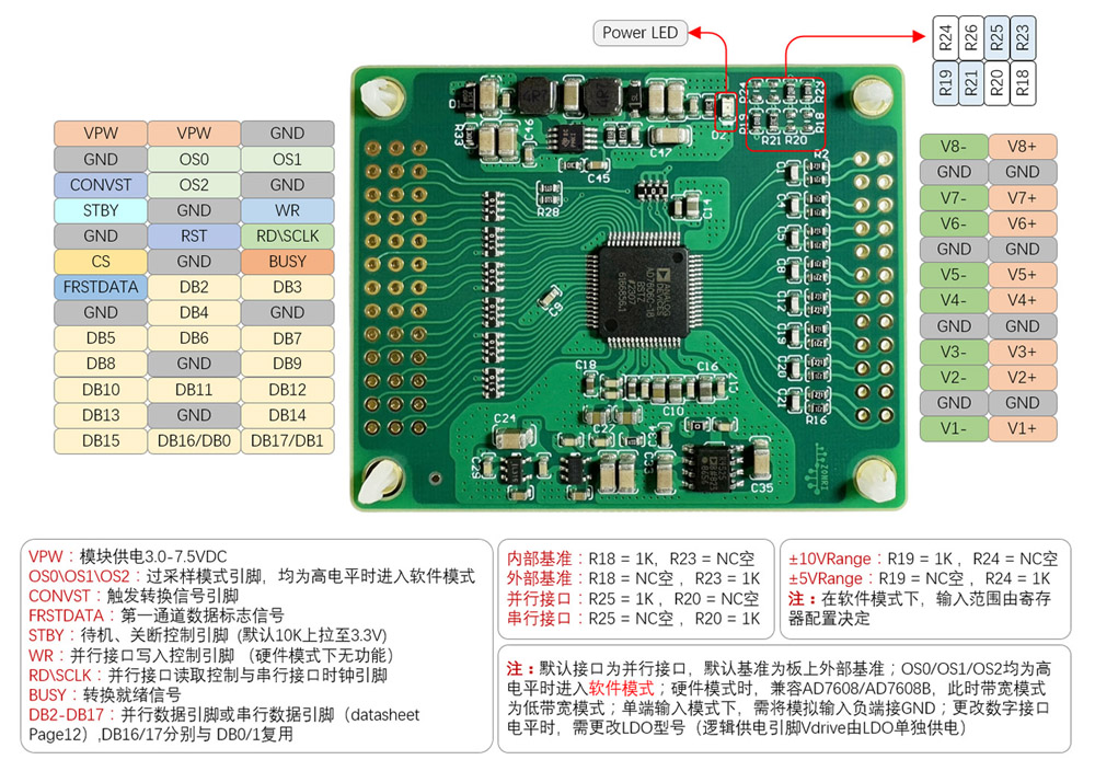 18 bit 8-channel single ended, differential 1Msps parallel ADC module