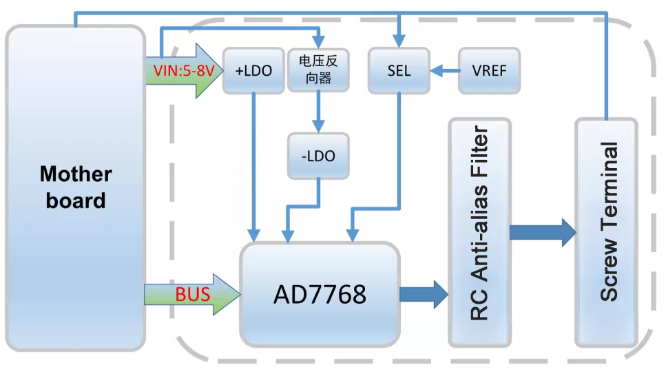 ·Maximum input bandwidth: 110.8 kHz (-3 dB bandwidth) Total harmonic distortion (THD): -120 dB (typical value) ± 2 ppm Full scale (FSR) Integral nonlinearity (INL) ± 30 ppm Gain error · ± 50 uV Misalignment error