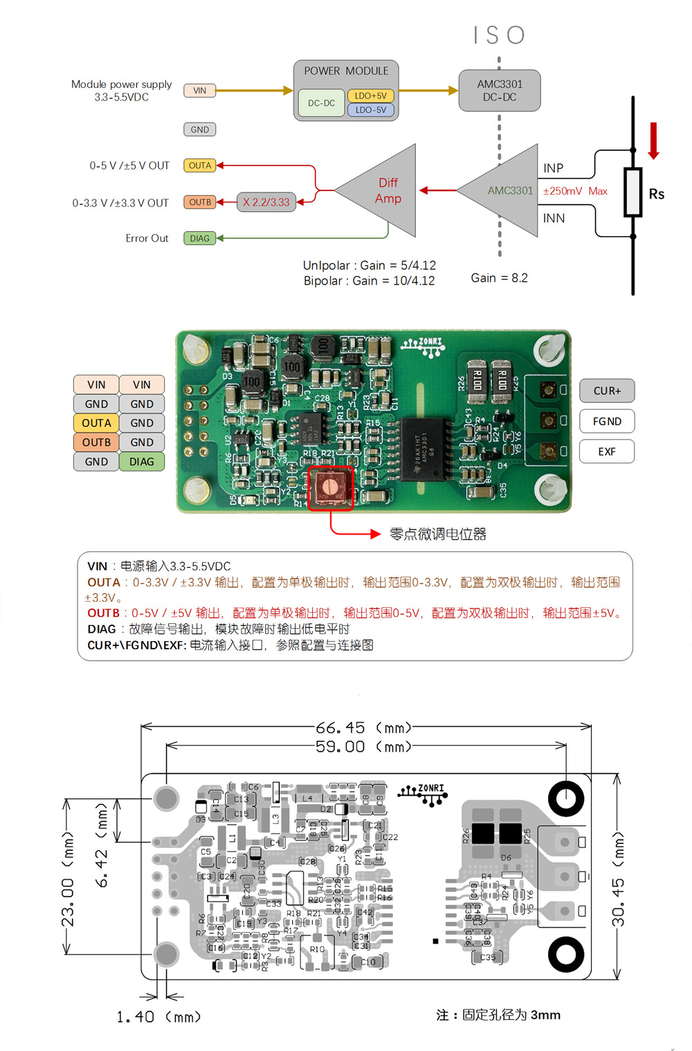 AMC3301 high-performance current isolation module single and bipolar output external current sensing resistor