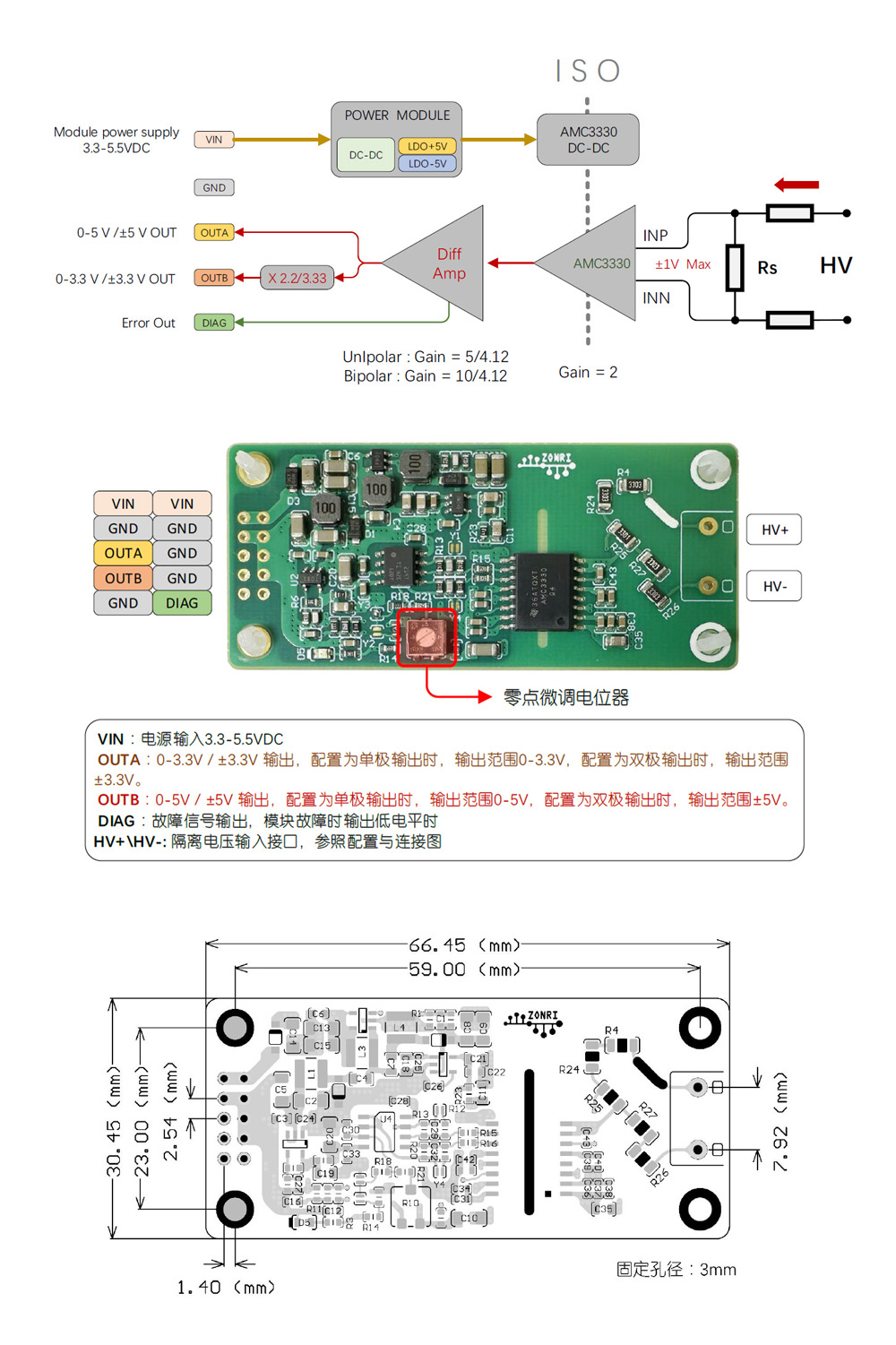 AMC3330 High Performance Voltage Signal Isolation Module/400V Input/Single Bipolar Output/Adjustable Zero Point