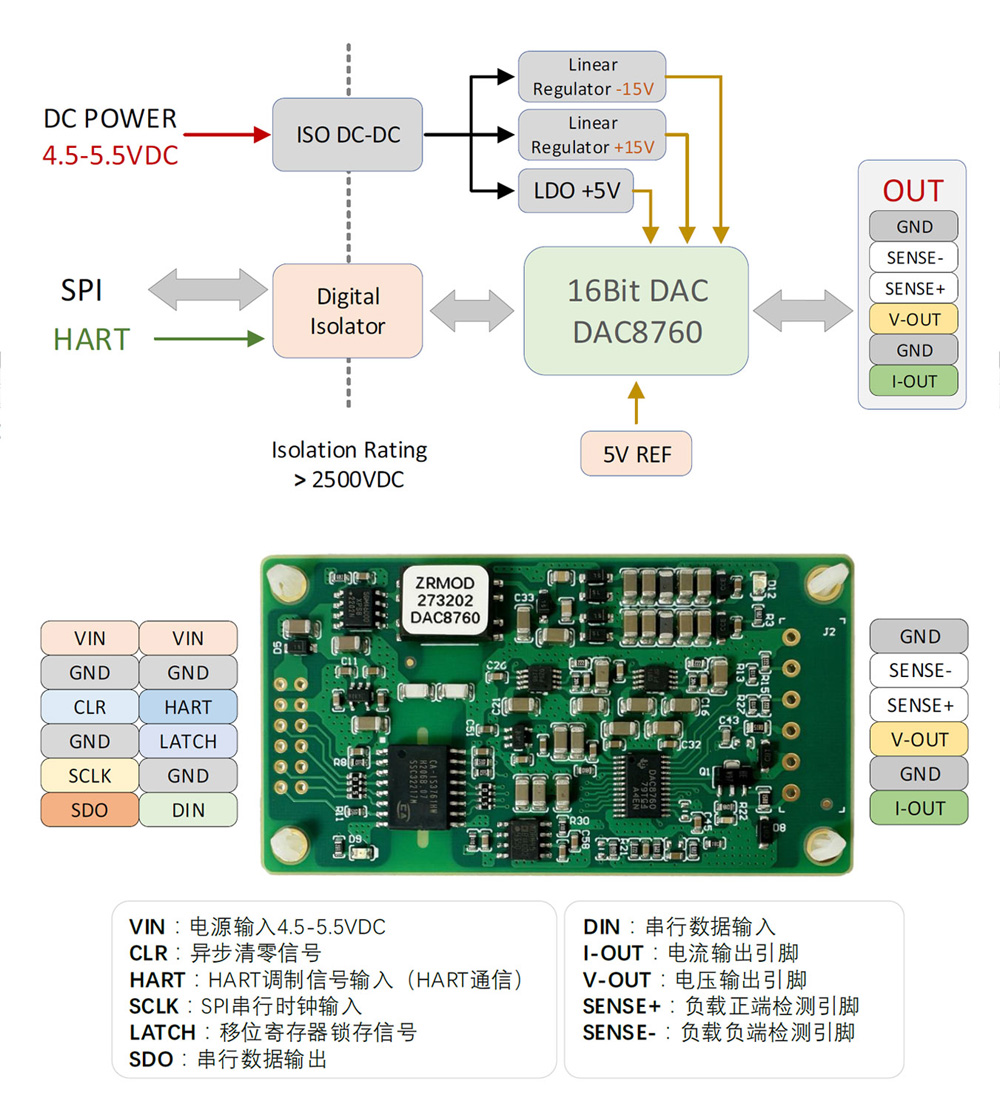 DAC8760 16 Bit High Performance Current Source Voltage Source Module ± 5V/10V/4-20mA/0-24mA