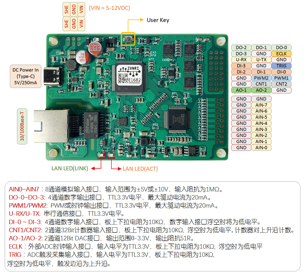 • E1682 LAN Ethernet Data Acquisition Card 16 Bit 8-Channel 200Ksps ± 5V/± 10 Parallel Sampling