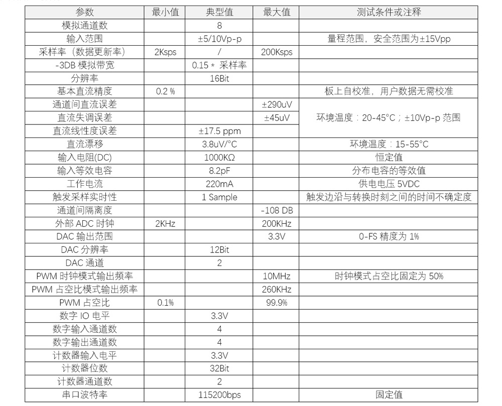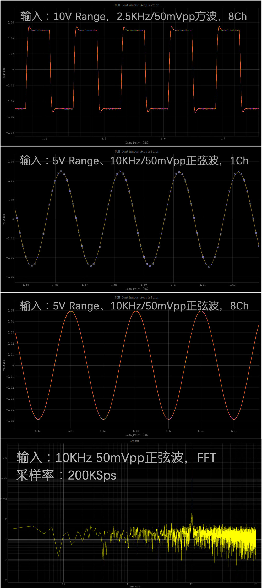 ±5V/±10 DC Range;  16Bit, 8 Channels; 2Ksps~200Ksps (60000 sampling frequency points)