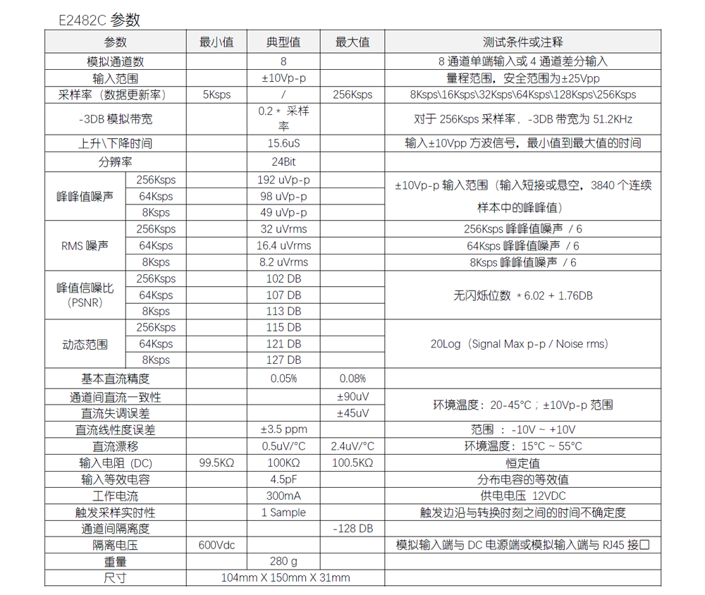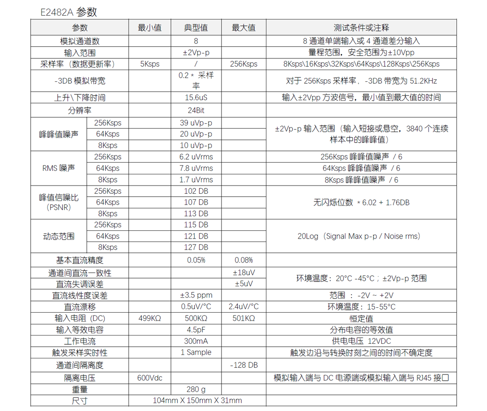 ± 2V/± 10V input range, 24Bit/8-channel parallel 256Ksps, or 4-channel differential 256Ksps