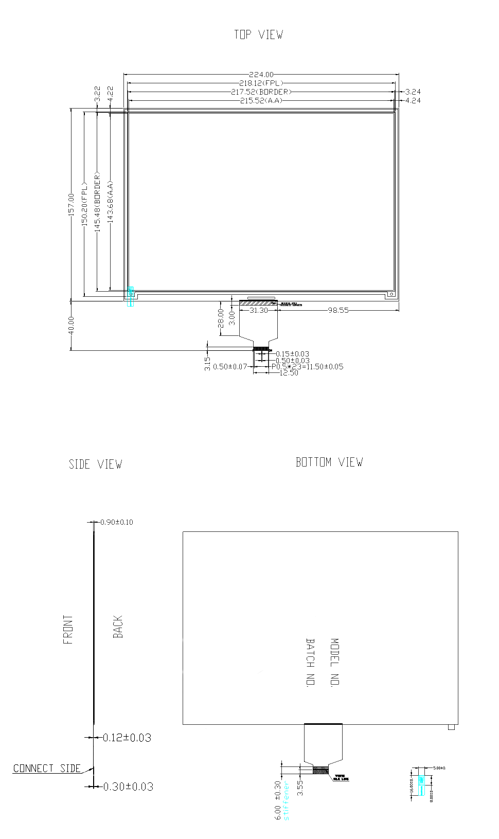 OUTLINE SIZE(mm) 224.0×157.0 ×1.0