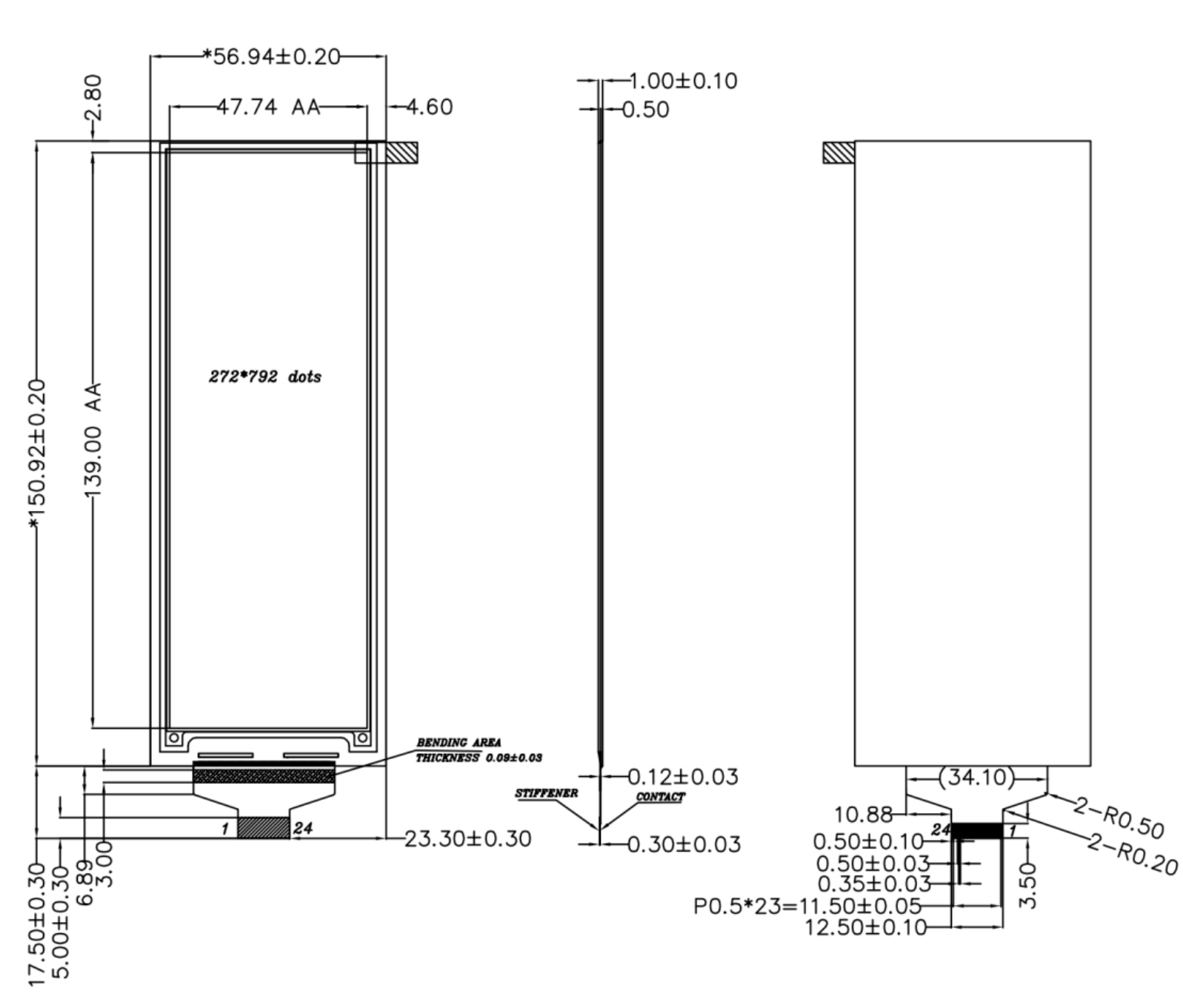 24 Pin FPC, Pitch:0.5mm |