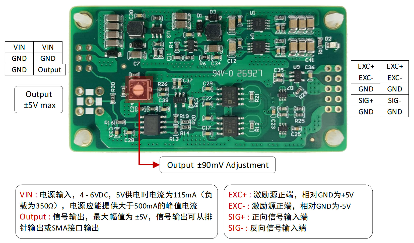 High precision strain signal amplification module, high bandwidth, high common mode suppression strain transmitter, 10V excitation source, 50Hz/60Hz CMRR>130db