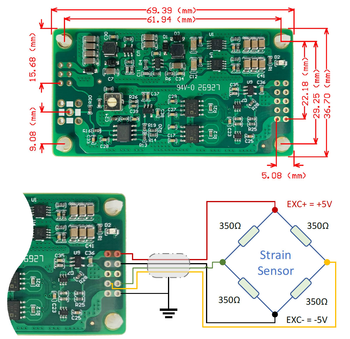 High precision strain signal amplification amplifier module, high bandwidth, high common mode suppression strain transmitter, 10V excitation source, 50Hz/60Hz CMRR>130db