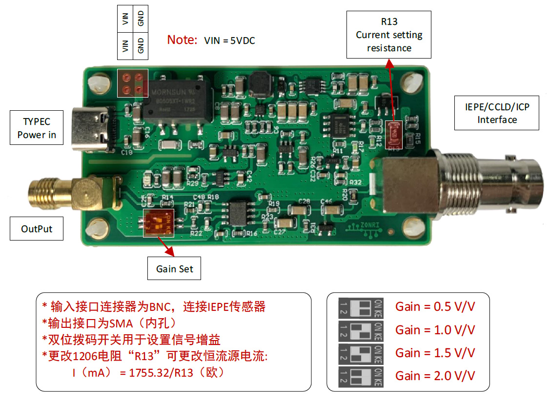 IEPE interface conversion current source adaptation 4mA constant current source vibration/acceleration sensor interface module