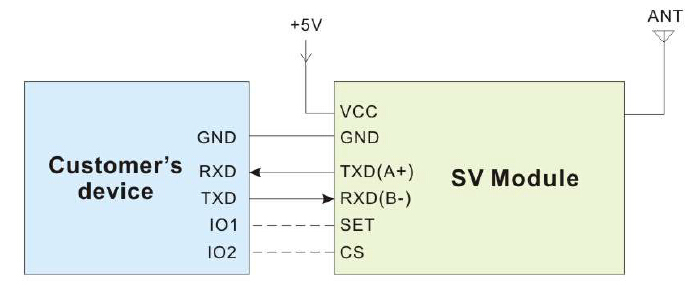 Note: The ground pin of the module and device should be connected together.